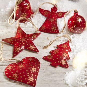 Καρδιά κόκκινη με νιφάδες 10εκ.