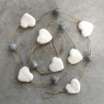Γιρλάντα φελτ 1μ. - Καρδιές λευκές