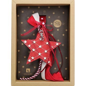 Γούρι Αστέρι με αστεράκια-Κρεμ 30x19εκ. από ξύλο
