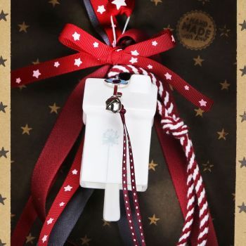 Γούρι Καμπάνα πορσελάνη Σπίτι-Ασημί