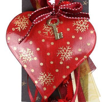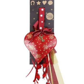 Γούρι Καρδιά με χρυσά σχέδια-Κλειδί 30εκ.