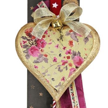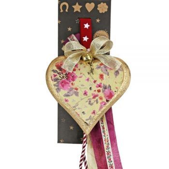Γούρι Καρδιά ξύλινη Vintage Bloom