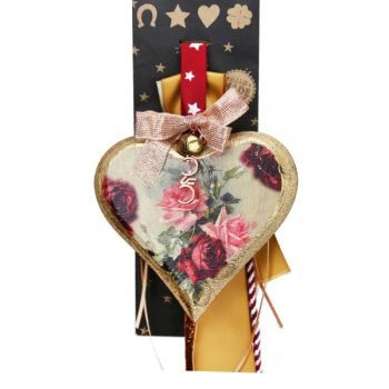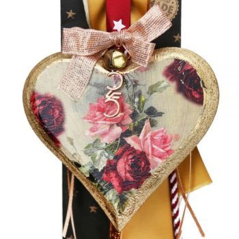 Γούρι Καρδιά ξύλινη Vintage Retro Roses