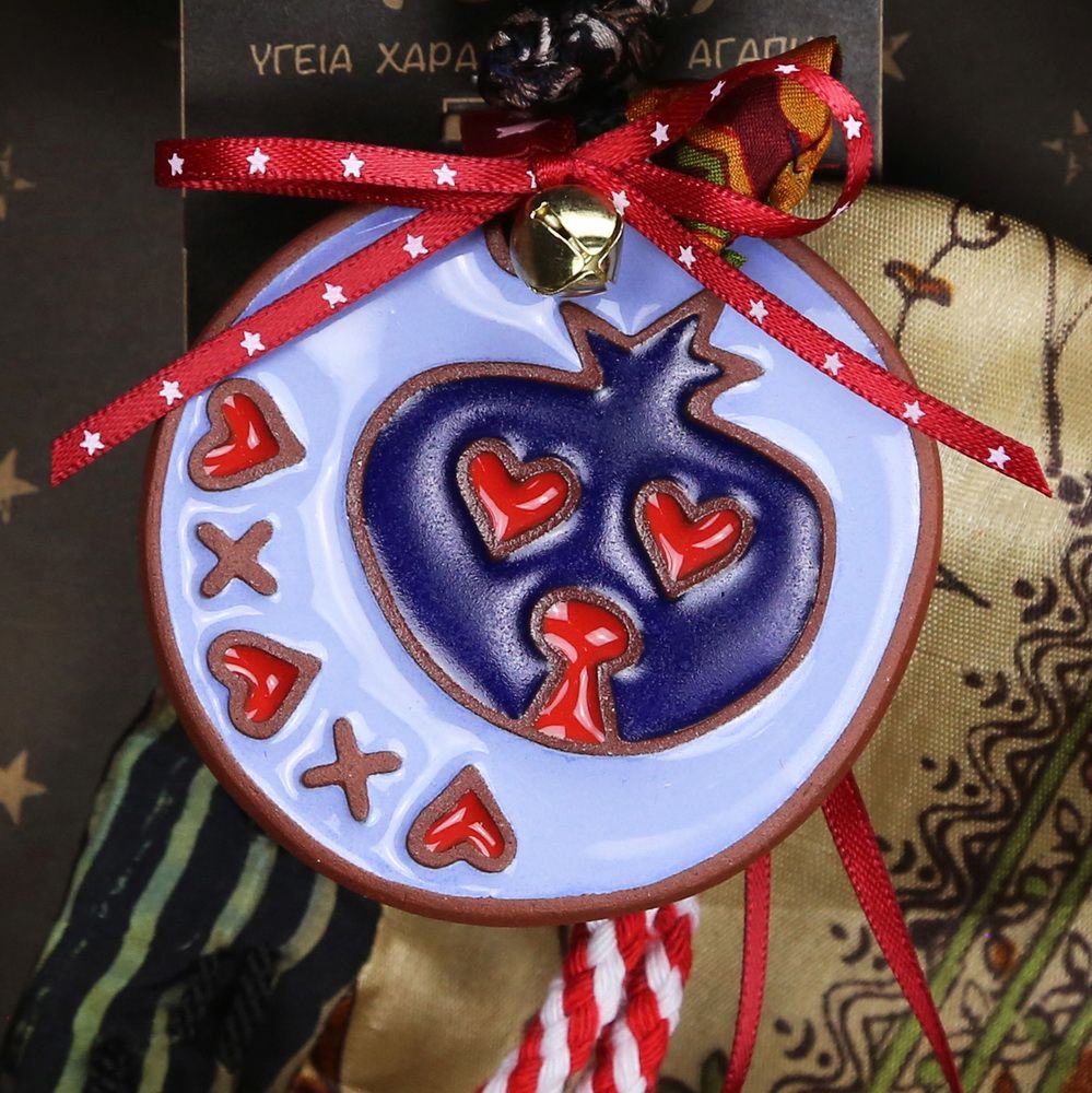 Γούρι Κεραμικό στολίδι-Ρόδι μπλε