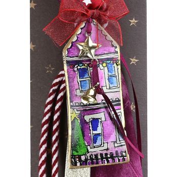 Γούρι Σπίτι μεταλλικό λιλά-Στενό 30x19εκ.