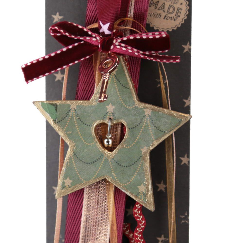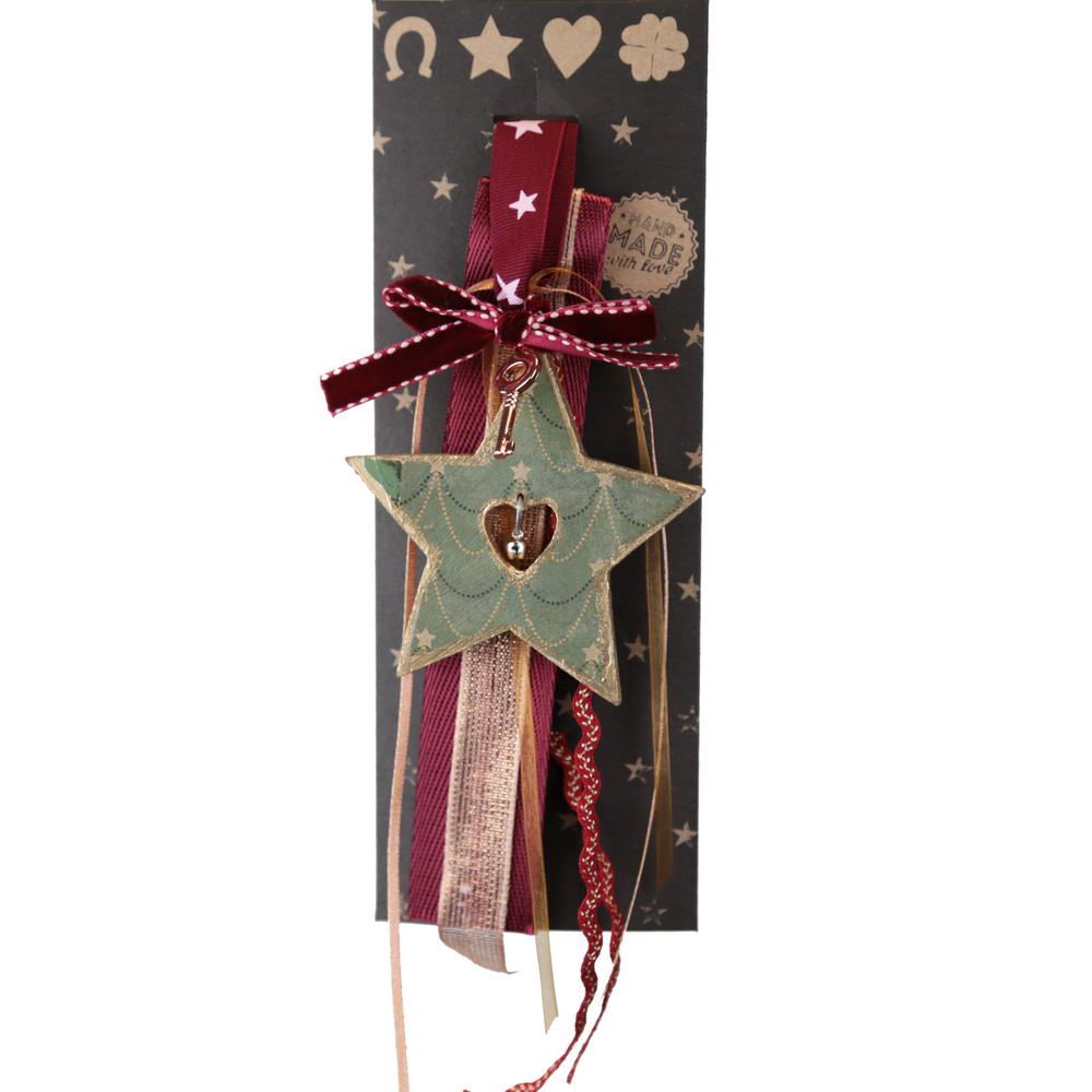 Γούρι ξύλινο Αστέρι με κουδουνάκι-Κλειδί 33εκ.