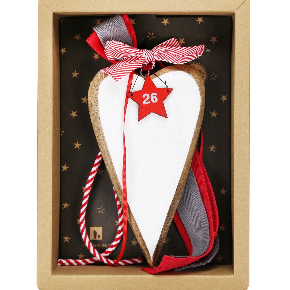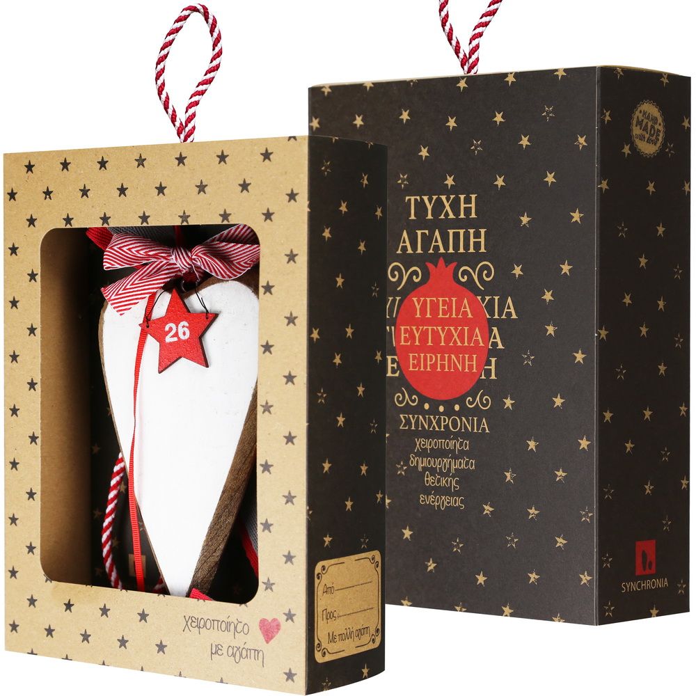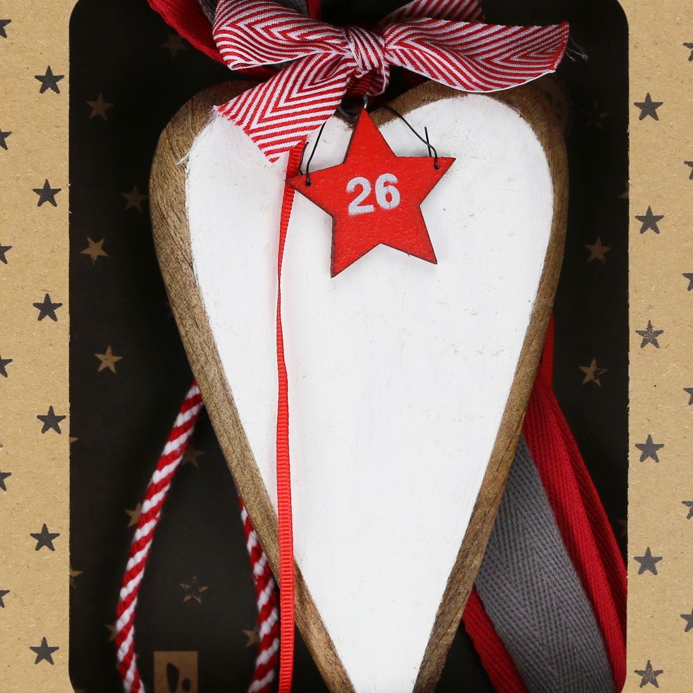 Γούρι Ξύλινο λευκό στολίδι-Καρδιά 30x19εκ.